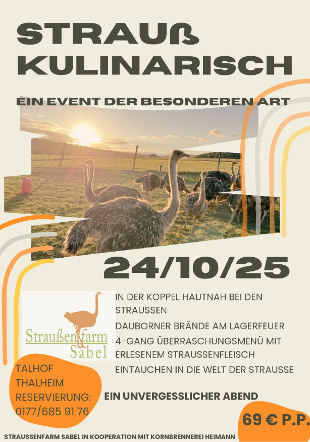 Unsere Straußenfarm lädt außerdem zum Verweilen ein: hier genießen Sie Kaffee und Kuchen, stöbern in der Deko-Scheune und steigen ein in den Straußenexpress.